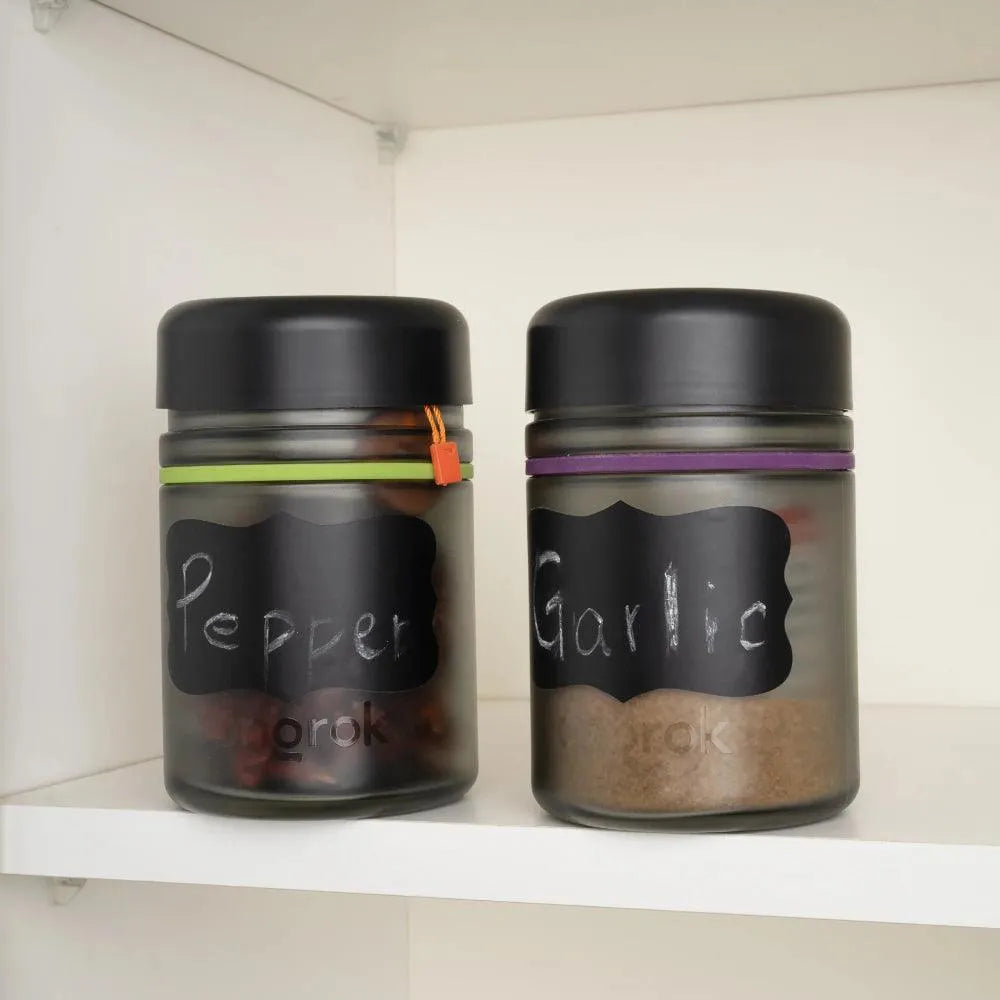 Designed with 6 color-coded rings (red, purple, and green) & 2 chalkboard labels, these unique storage jars make it easy to organize and keep different products separated so you can easily identify what’s inside!