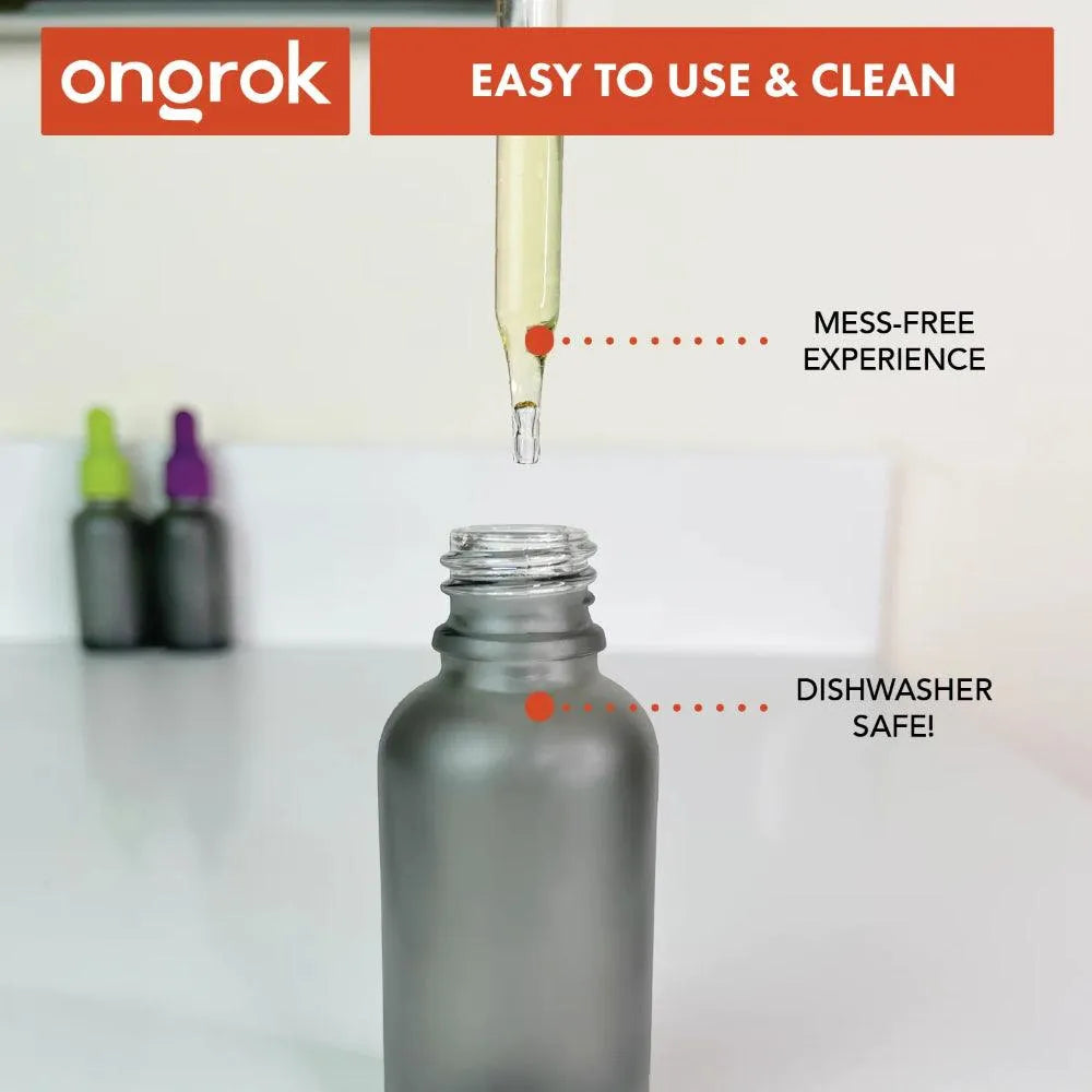 Ongrok’s frosted soda lime glass bottles are bpa free and lead free. The dropper caps are also bpa free and made from food grade plastic & soft rubber.