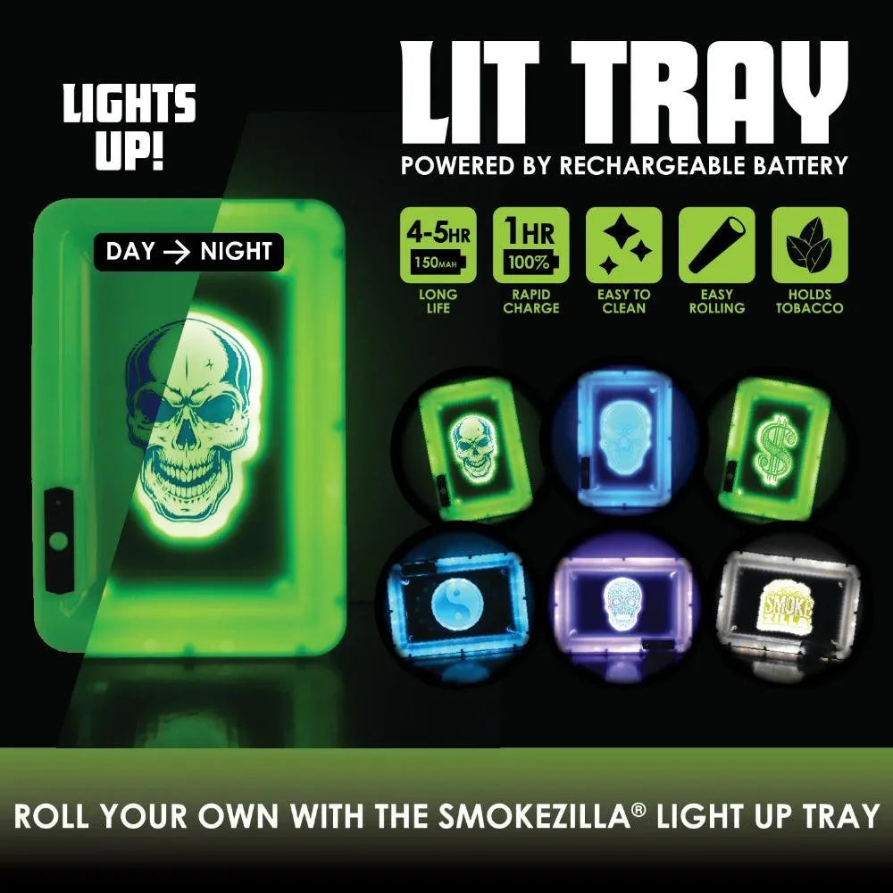 These Smokezilla Lit Rolling Trays feature a variety of cool, hardcore designs. Made with interior LED lights, these smooth, easy to clean rolling trays have raised edges to keep your herb supplies contained, and they light up in the dark to make rolling even more fun!