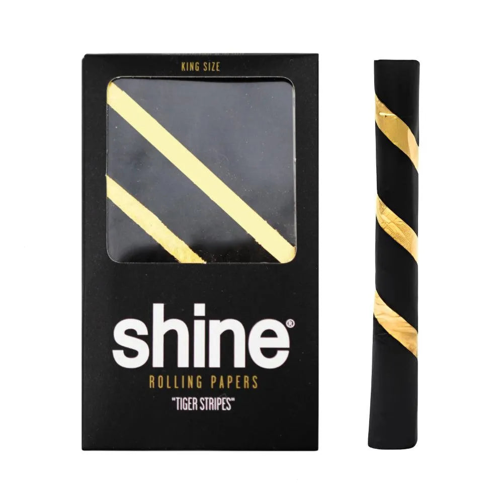 Indulge in luxury with the Shine Tiger Stripes 1-sheet Pack King Size rolling paper. Each sheet is handcrafted with precision, featuring edible ink printed black paper adorned with...