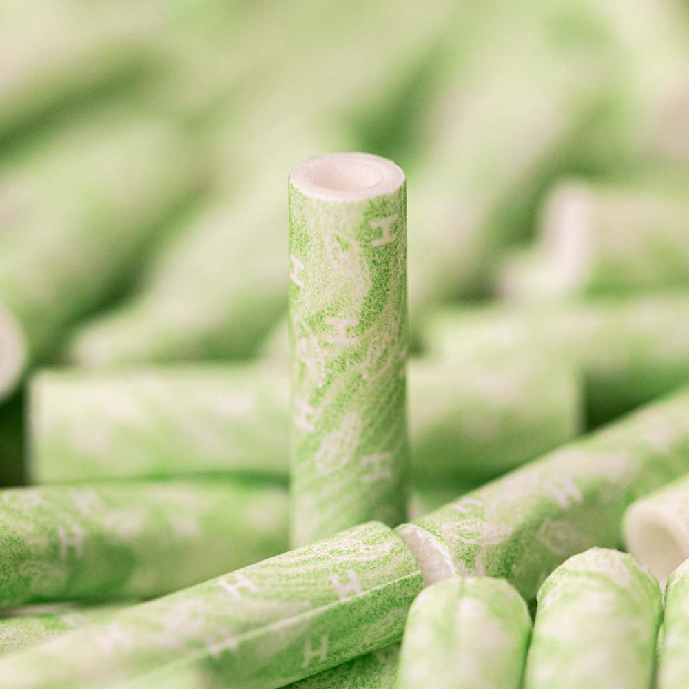 Each 6.4mm × 30mm slim filter is designed to deliver low-resistance airflow while capturing up to 38% more fine particles compared to standard tips. The soft green casing with subtle smoke-like marbling makes every filter visually unique - adding a refined, nature-inspired accent to your setup.