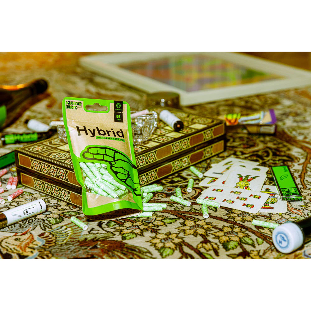 Refresh your setup with Hybrid Supreme Filters Bag Green 55, a limited-edition pack of 55 slim activated carbon filters built for a cleaner, smoother draw. It’s made for smokers who want reliable airflow, tidy handling, and a standout color that still feels premium.