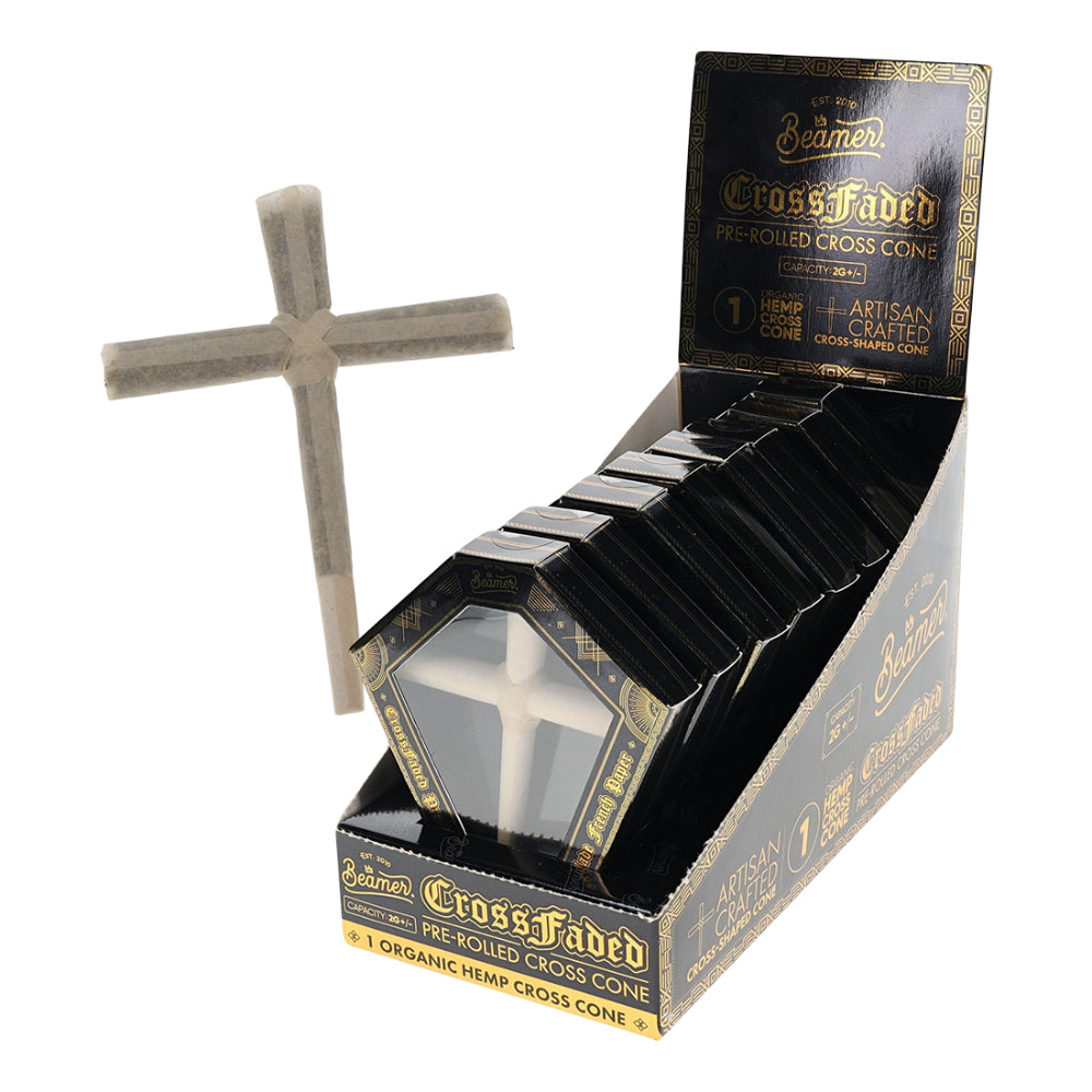 The Beamer CrossFaded Cross-Shaped Cone is a pre-rolled cone made from organic hemp paper, designed to be filled with your favorite legal smoking herbs. It’s perfect for those who want a ready-to-fill, creative cone for events, parties, or personal sessions.