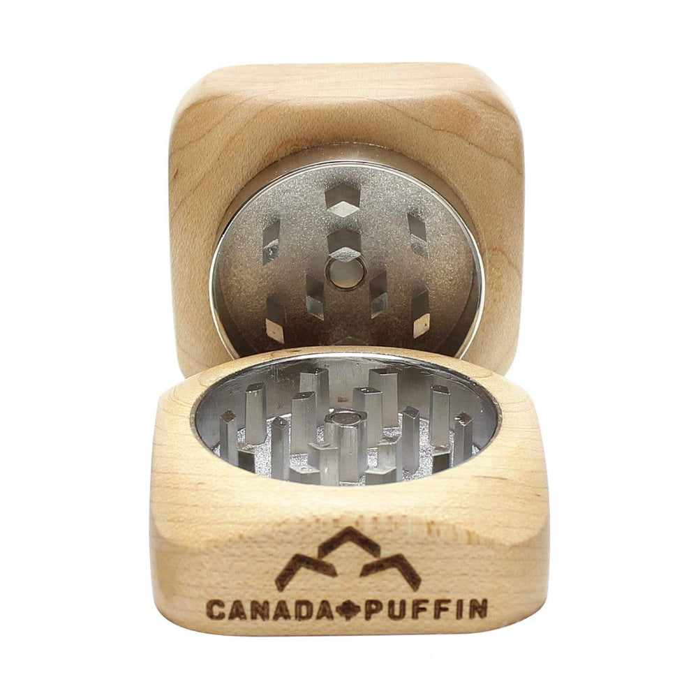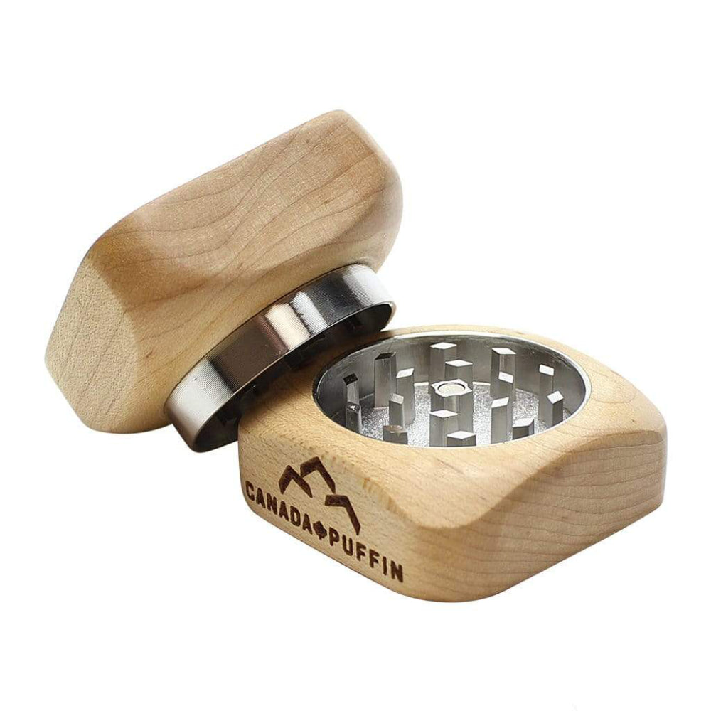 Each grinder is handcrafted from real Canadian Maple, meaning no two pieces are alike. The natural wood grain patterns, slight color variances, and engraved Canada Puffin branding make it a one-of-a-kind smoking accessory.
