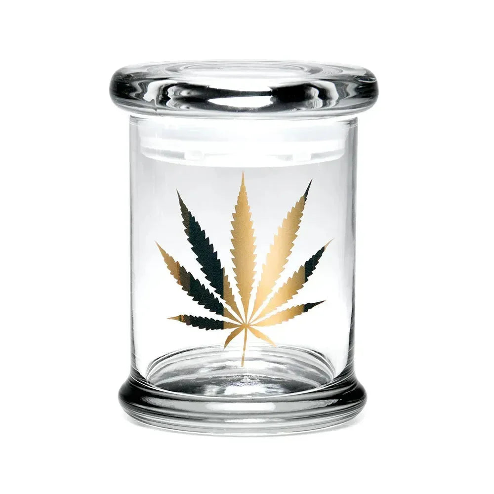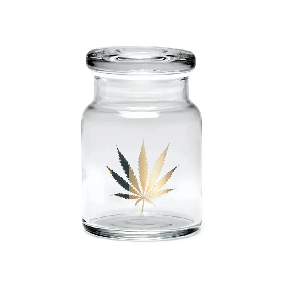 Mit einem wunderschönen goldenen Hanfblatt-Aufkleber sind diese Gläser perfekt zum Aufbewahren Ihrer Lieblingskräuter, medizinischen Vorräte, Kleingeld oder anderer Schätze, die Ihnen am Herzen liegen. Der Glas-Pop-Top-Deckel sorgt für einfachen Zugang und hält den Inhalt frisch und sicher mit seinem luftdichten Verschluss.