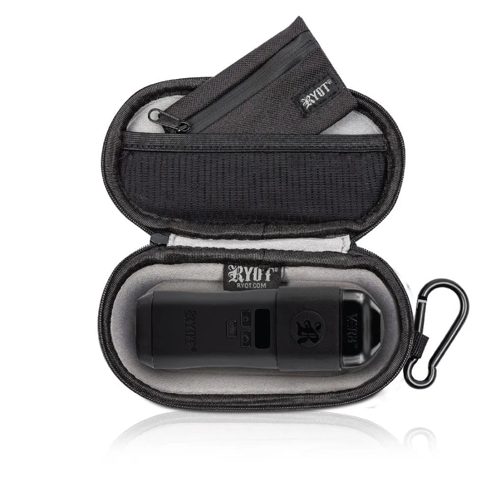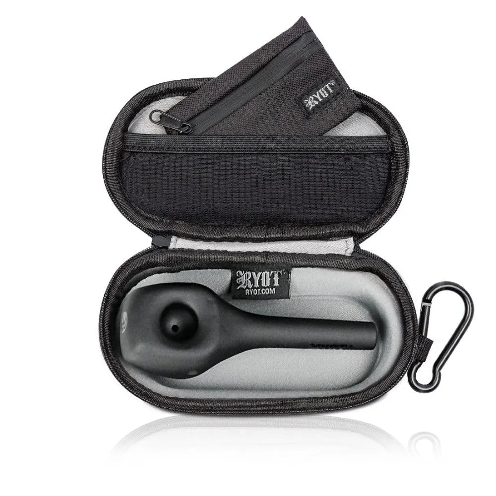 Der HeadCase von RYOT bietet eine robuste Aufbewahrung mit geruchsabsorbierender Technologie. Der HeadCase ist sicherer denn je mit einer strapazierfähigen Außenschale aus wetterfestem Canvas-Stoff und einem weichen, gepolsterten Innenraum. Noch nie waren Ihre kleineren Handpfeifen, Verdampferund One Hitters so tragbar. Passt gut zum VERB DHV Verdampfer und dem Stand Up Spoon Handpfeife.