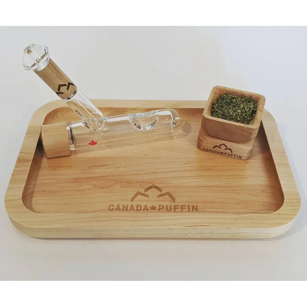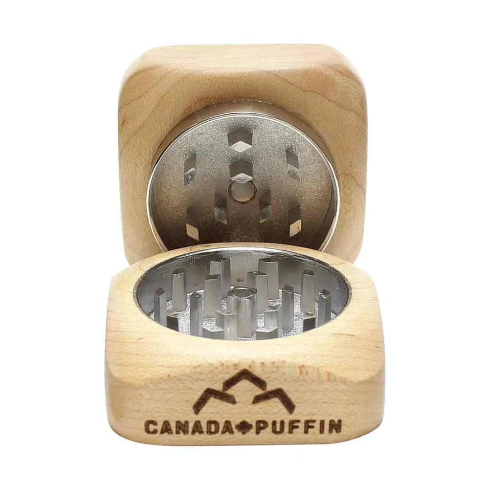 Each grinder is handcrafted from real Canadian Maple, meaning no two pieces are alike. The natural wood grain patterns, slight color variances, and engraved Canada Puffin branding make it a one-of-a-kind smoking accessory.