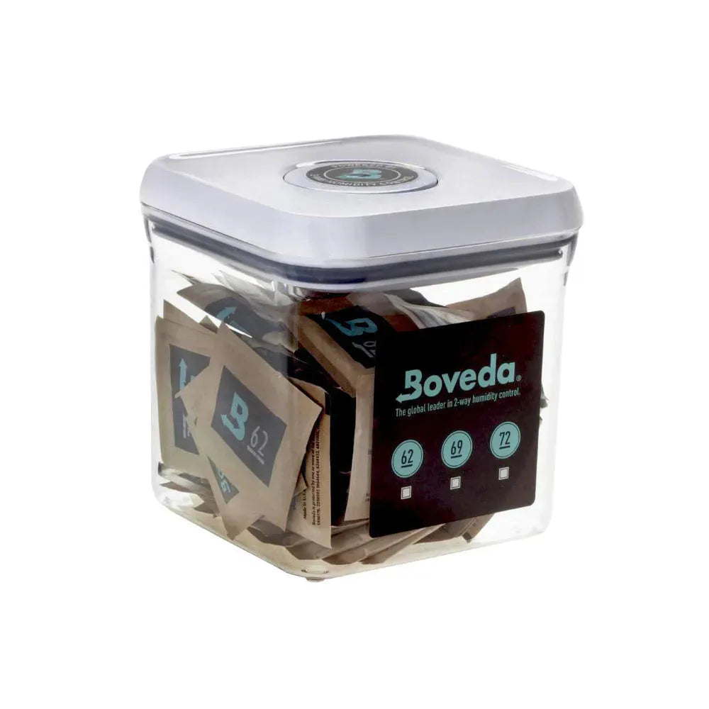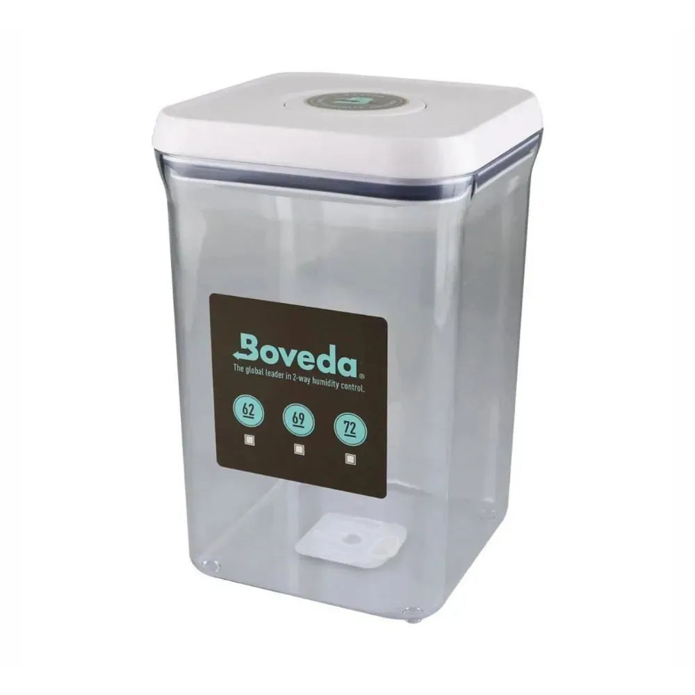 Το Boveda Display Container είναι ένας πάγκος 2.4qt για τα 4g ή 8g humidipaks που χρησιμοποιούνται για το στέγνωμα, την ωρίμανση και την αποθήκευση νόμιμων βοτάνων.