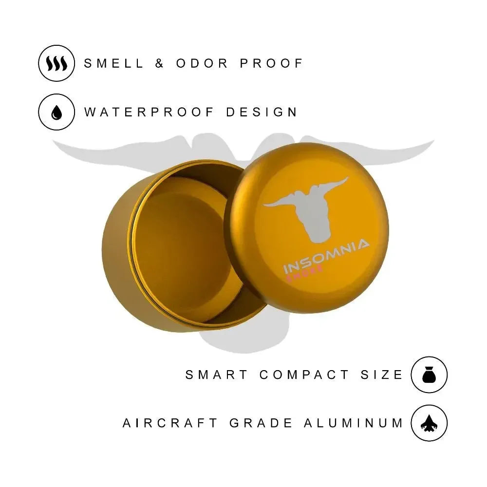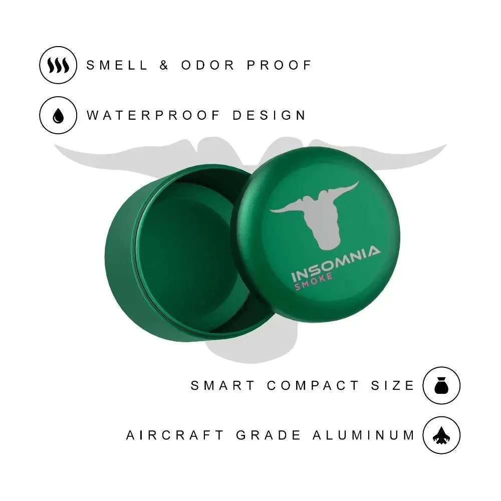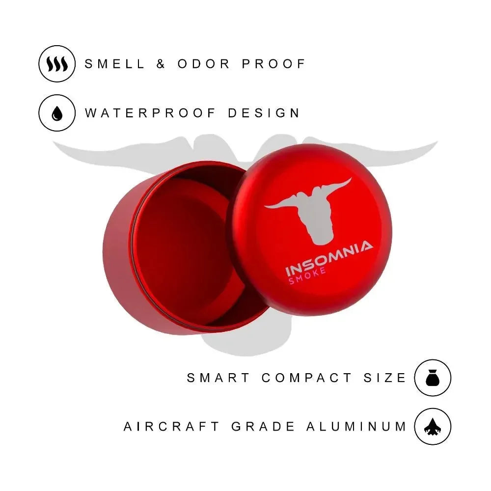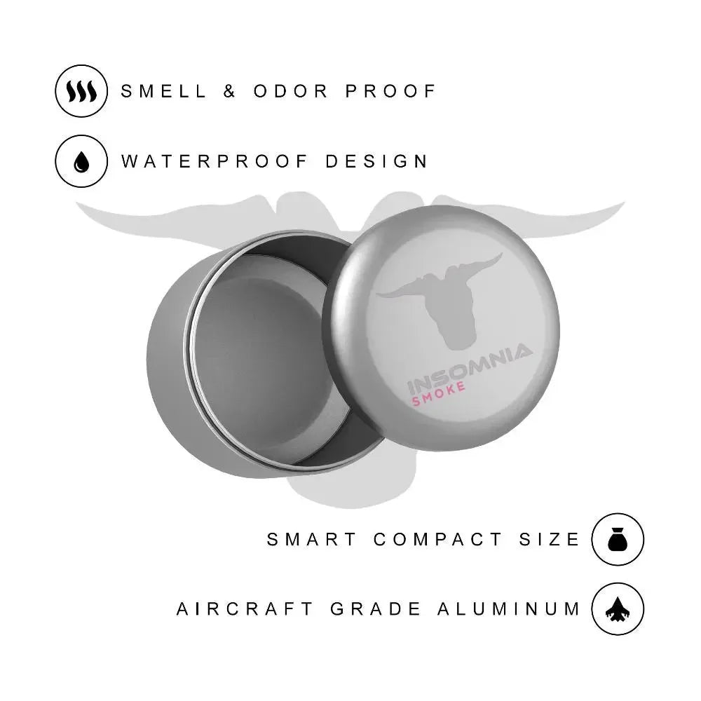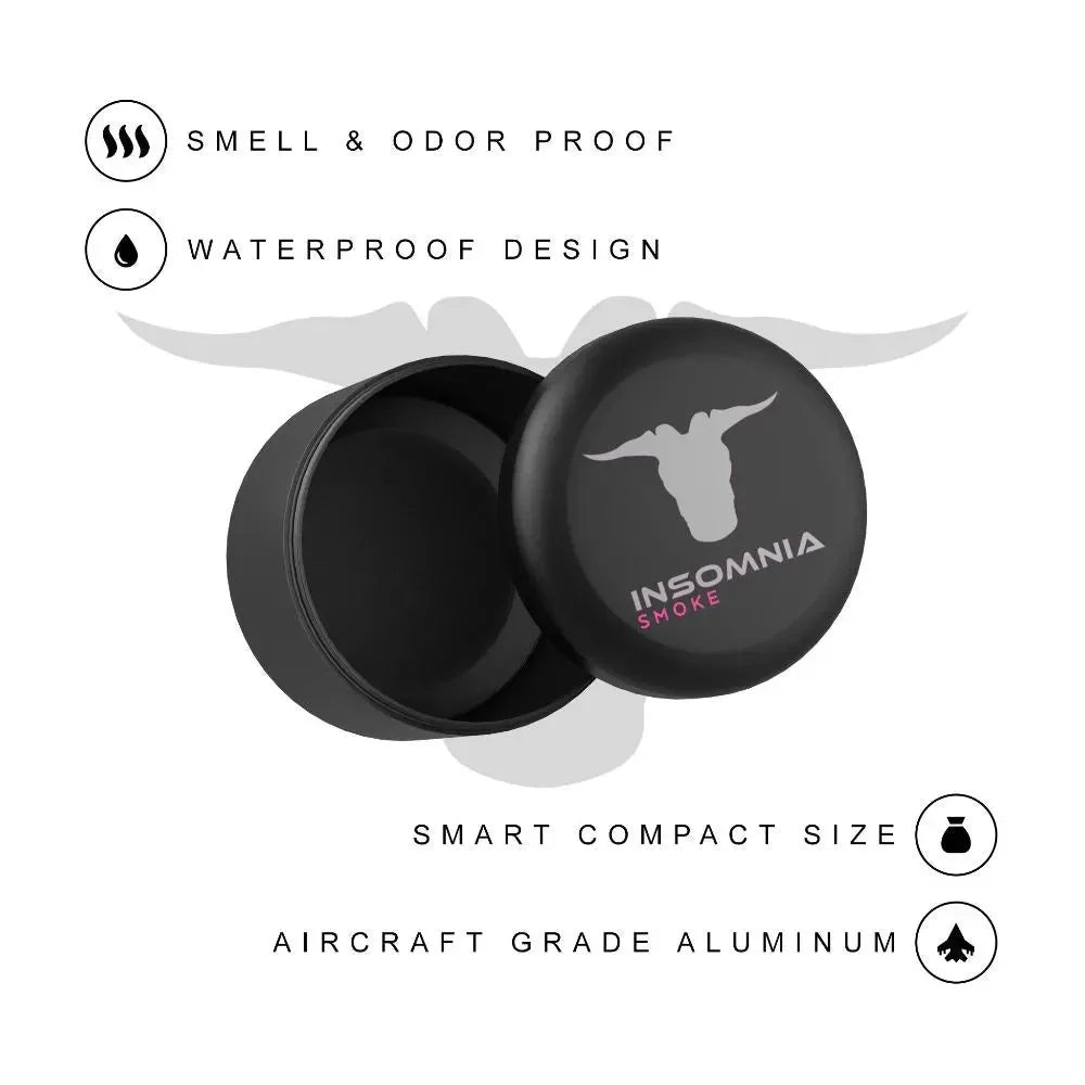 Παρουσιάζουμε το Insomnia Smoke Compact Storage Κουτί σε σχήμα δίσκου - ένα premium, άοσμο και αδιάβροχο μεταλλικό κουτί αποθήκευσης σχεδιασμένο για τη διακριτική και ασφαλή αποθήκευση των βοτάνων, μπαχαρικών, χαπιών και άλλων μικρών αντικειμένων σας. Κατασκευασμένο από υψηλής ποιότητας ανοδιωμένο αλουμίνιο, αυτό το κομψό και ανθεκτικό δοχείο αποθήκευσης εξασφαλίζει ότι το περιεχόμενό σας παραμένει φρέσκο και προστατευμένο, είτε στο σπίτι είτε εν κινήσει.