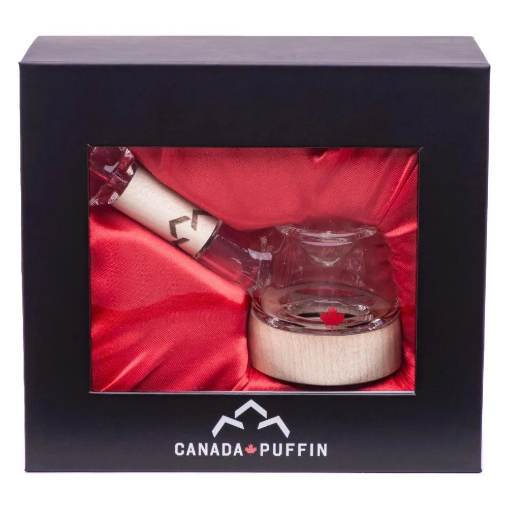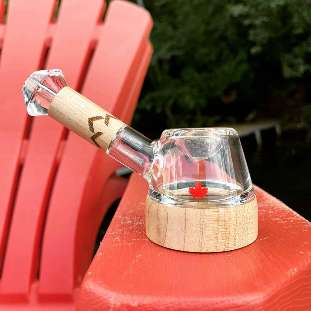 Its fusion of handblown borosilicate glass with authentic maple wood accents, along with its Canadian heritage design, gives it a unique look and feel not found in standard glass pipes.