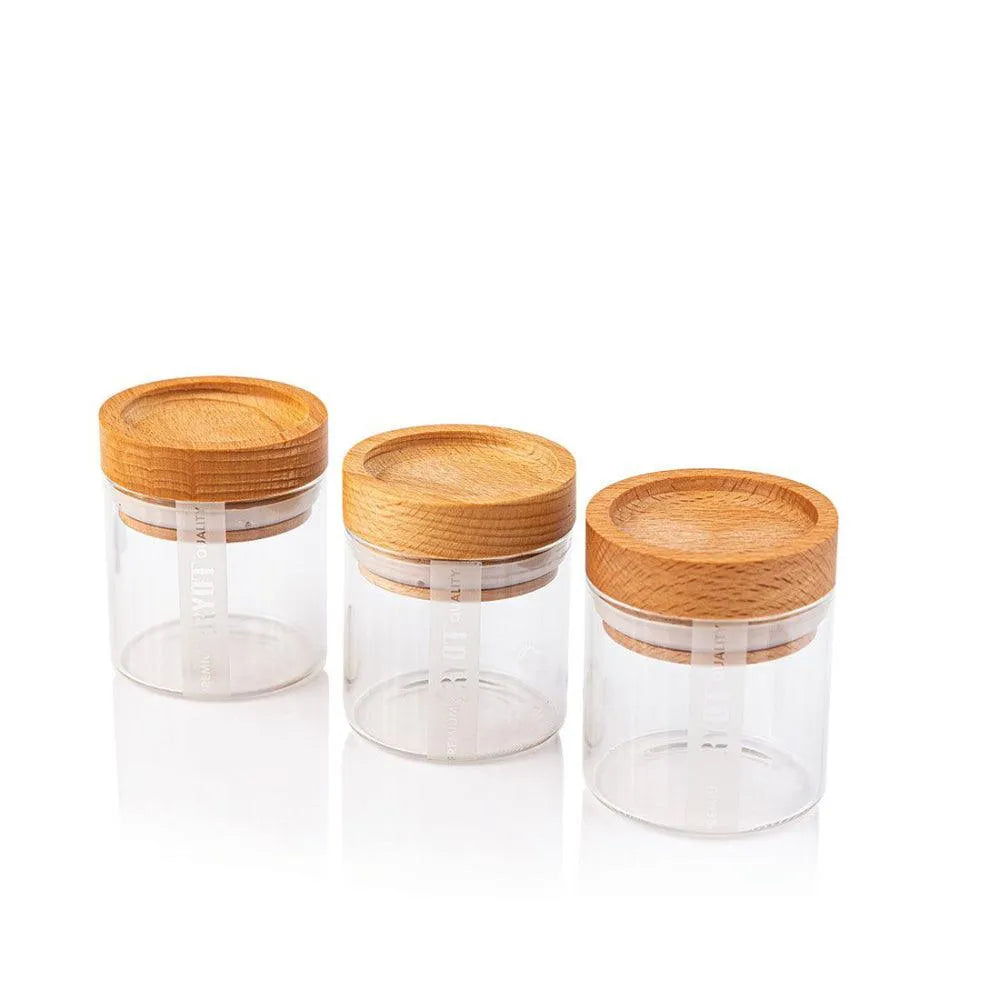 - Περιλαμβάνει 3 RYOT Γυάλινα Βάζα – Καπάκι από Ξύλο Οξιάς με Ενσωματωμένο Δίσκο