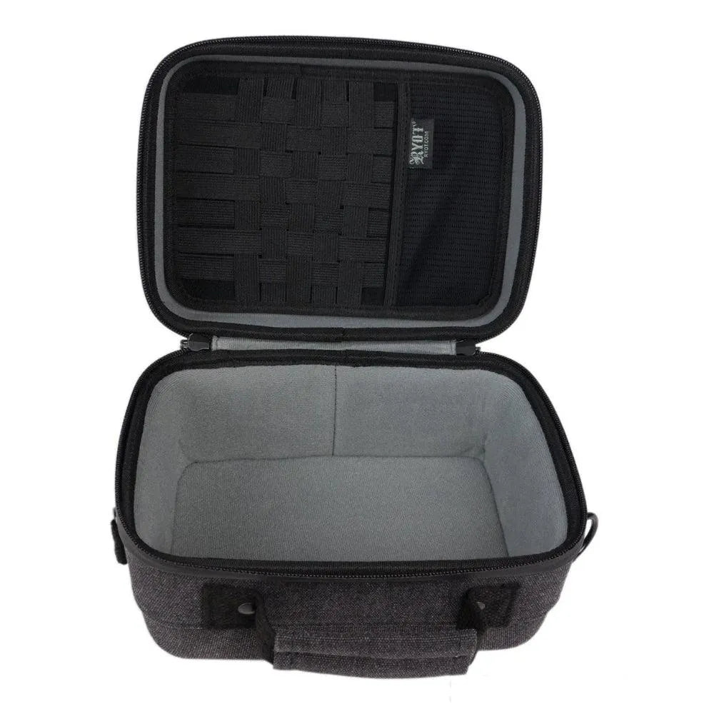 Το RYOT Safe Case έρχεται πλήρως εξοπλισμένο με προσαρμόσιμη επένδυση και τεχνολογία X-Strap για να ασφαλίζει εξοπλισμό διαφορετικών μεγεθών και σχημάτων. Κάθε Safe Case περιλαμβάνει ένα αφαιρούμενο RYOT Fresh Pod για να προσφέρει στο δοχείο σας ένα επιπλέον επίπεδο προστασίας από οσμές. Εν κινήσει; Το Safe Case σας περιέχει ένα αφαιρούμενο Δίσκος Στριψίματος επίσης εξοπλισμένο με τεχνολογία απορρόφησης οσμών άνθρακα. Συνδυάζεται καλά με ένα Kannastör GR8TR, RYOT Γυάλινα Βάζα Αποθήκευσης