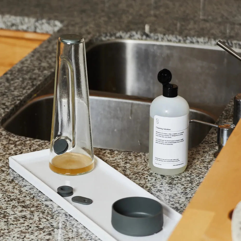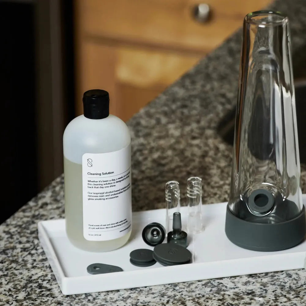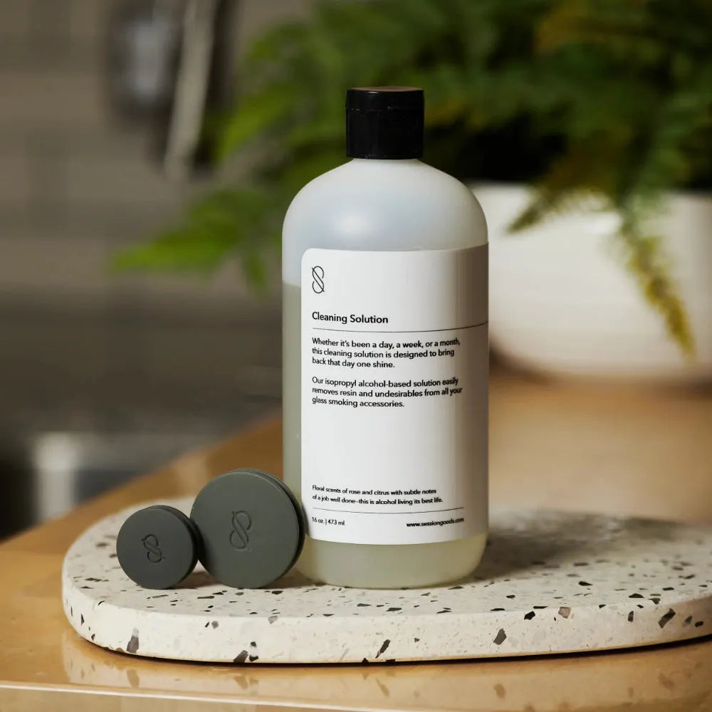 Nuestra solución limpiadora Bong es el mejor limpiador para Bongs para eliminar la resina incrustada y restaurar tus accesorios para fumar a su brillo original.