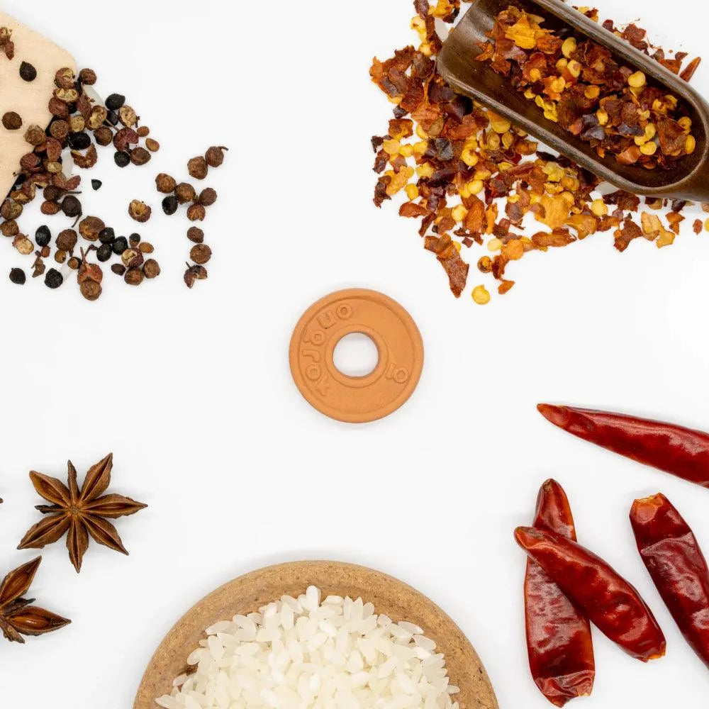 Antes de usar, remoje en agua durante 5 minutos, deje secar ligeramente durante 1-2 minutos y colóquelo con sus productos.Nuestras piedras vienen con una cuerda de 19 cm de largo para que puedas colgarla fácilmente al lado de tu frasco, de modo que no entre en contacto con tus hierbas o especias.