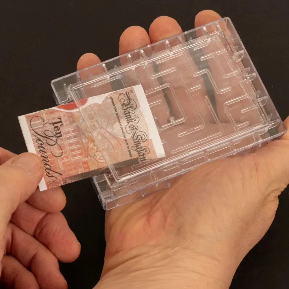 Eemalda lihtsalt lukustus, seejärel aseta kinkekaardid, kinkekaardid või raha labürindi sisse, et need õnnelikule saajale kinkida. Labürindisse mahub kuni 5 kinkekaarti.