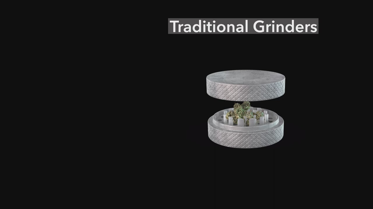 Les Grinders réguliers compressent et déchiquettent votre matériau. OTTO fraise votre matériau dans sa chambre extensible, le découpant couche par couche, pour préserver la qualité et la structure de votre matériau. Une fois fraisé à la perfection, OTTO s'assure que le matériau passe proprement et uniformément dans le Cône avec une rétention complète de la feuille, de l'huile et du kief, vous offrant une expérience de consommation supérieure.