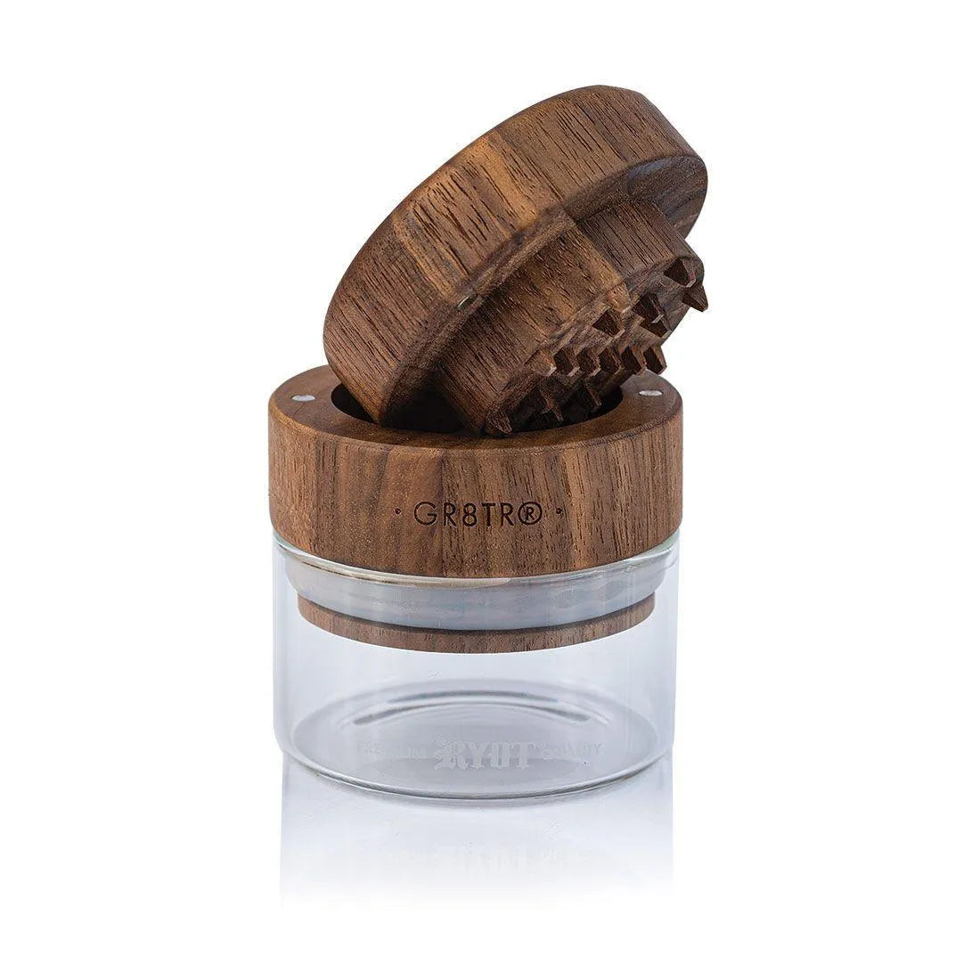 Le Wood GR8TR avec corps en bocal s'appuie sur le design breveté Kannastör GR8TR et ajoute un système de bocal en verre interchangeable et scellable. Conçu pour être utilisé avec n'importe quel RYOT bocal ou système de stockage tel que le RYOT Lock R Box, Safe Case.
