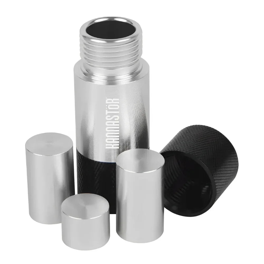 A Kannastör Kief Press egy kompakt, strapabíró eszköz, amelyet azoknak a felhasználóknak terveztek, akik könnyedén és következetesen szeretnék átalakítani a növényi pollenjüket szilárd korongokká. Prémium 61/60 eloxált élelmiszeripari alumíniumból készült, ez a prés tartósságot és hőállóságot kínál akár 175°C-ig, így ideális a növényi anyag hőkezelésére anélkül, hogy veszélyeztetné a biztonságot vagy a minőséget. Legyen szó tárolásról, szállításról vagy a használat megkönnyítéséről, a Kannastör minden fordulatban precizitást és megbízhatóságot nyújt. Hármas csapszeges kialakítása lehetővé teszi, hogy egyszerre két 1 grammos korongot préseljen, maximalizálva a hatékonyságot anélkül, hogy a kézművességet feláldozná.