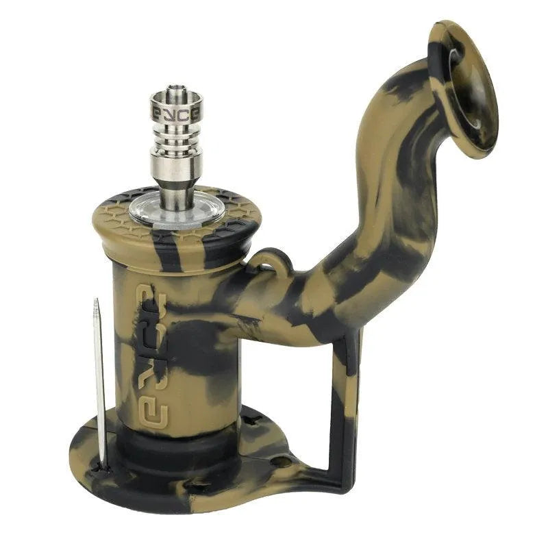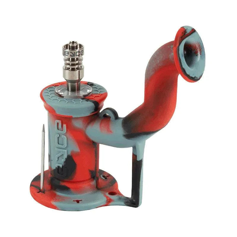 Rispetto al suo predecessore, il Eyce Rig II vanta aggiornamenti epici nel design, rendendolo ancora una volta il miglior rig in silicone sul mercato. Il nostro nuovo collare in vetro da 10mm è l'aggiornamento più notevole. Questo nuovo collare tiene il chiodo in titanio incluso e funge da barriera termica, proteggendo il silicone e prolungando la vita del rig in silicone. Dotato di pareti della camera rinforzate, questo rig portatile di nuova generazione ha una stabilità migliorata, offrendo un'esperienza di fumo serale migliore rispetto al nostro Rig originale Eyce . Anche il tappo dello stelo è stato aggiornato con pareti in silicone più spesse. Oltre al nostro contenitore per concentrati integrato e ai quattro slot per strumenti, il Rig II ha un nuovo slot per strumenti per tenere un Carb Cap da 10mm aggiornato che è disponibile ora!