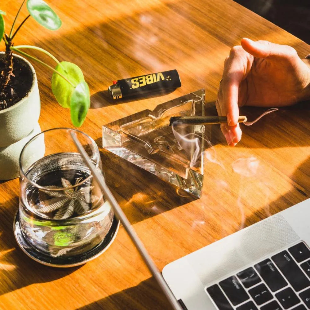 Questo posacenere all'avanguardia e moderno di Higher Standards è realizzato in cristallo di alta qualità e prodotto proprio qui negli Stati Uniti. L'artigianato superiore è sicuro di fare una dichiarazione ovunque venga utilizzato o esposto. Che tu stia usando strumenti caldi o abbia bisogno di un posto per il tuo capolavoro fatto a mano, il Higher Standards Premium Crystal Ashtray ti copre. I tre incavi triangolari forniscono un posto per appoggiare la tua sigaretta. Il design robusto offre un peso sostanziale per la stabilità. Il design geometrico a tre punti simboleggia la connessione tra corpo, mente e spirito, rendendo questo posacenere un'aggiunta perfetta per la collezione di qualsiasi fumatore.