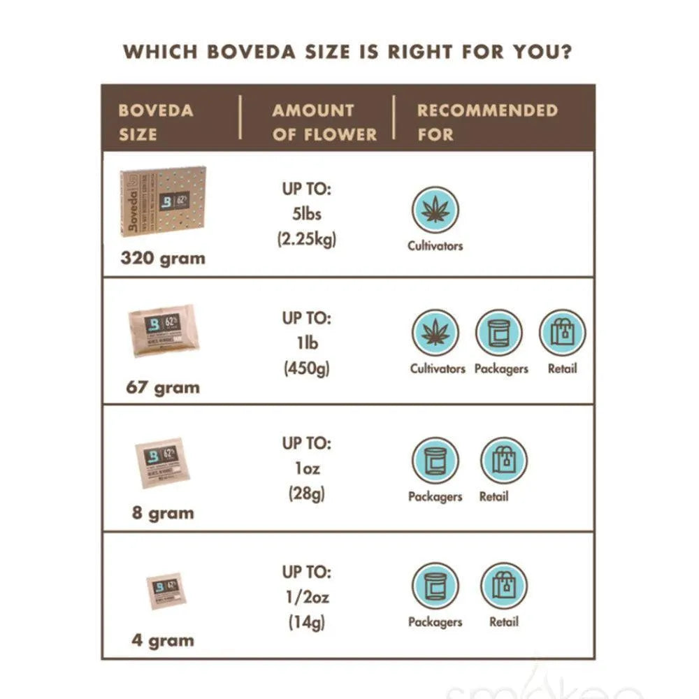 Boveda maat 4 is perfect voor kleine containers, kleine zakjes en pre-roll blikjes. Meer nodig? Boveda is beschikbaar voor elke containermaat en opslagfase. Ervaar zelf hoe veel beter het is met Boveda. Plaats gewoon Boveda in je container met je kruiden en sluit het deksel. Zo eenvoudig is het.