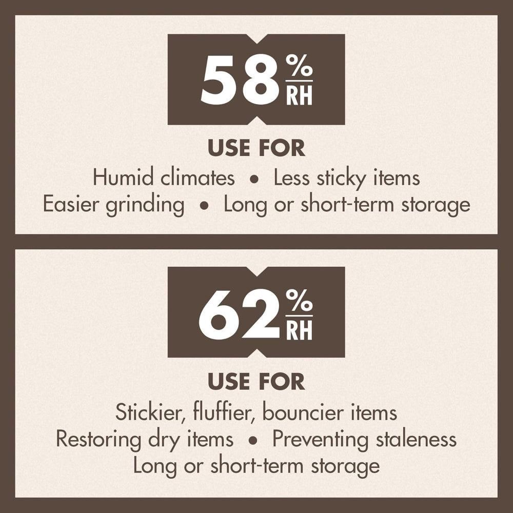 Boveda biedt precieze vochtigheidscontrole voor je kruiden, zodat het zijn oorspronkelijke geur, smaak en consistentie behoudt. Boveda's gepatenteerde formule gebruikt volledig natuurlijke zouten en water om de exacte Relatieve Vochtigheid (RH) te garanderen die nodig is om versheid te behouden.