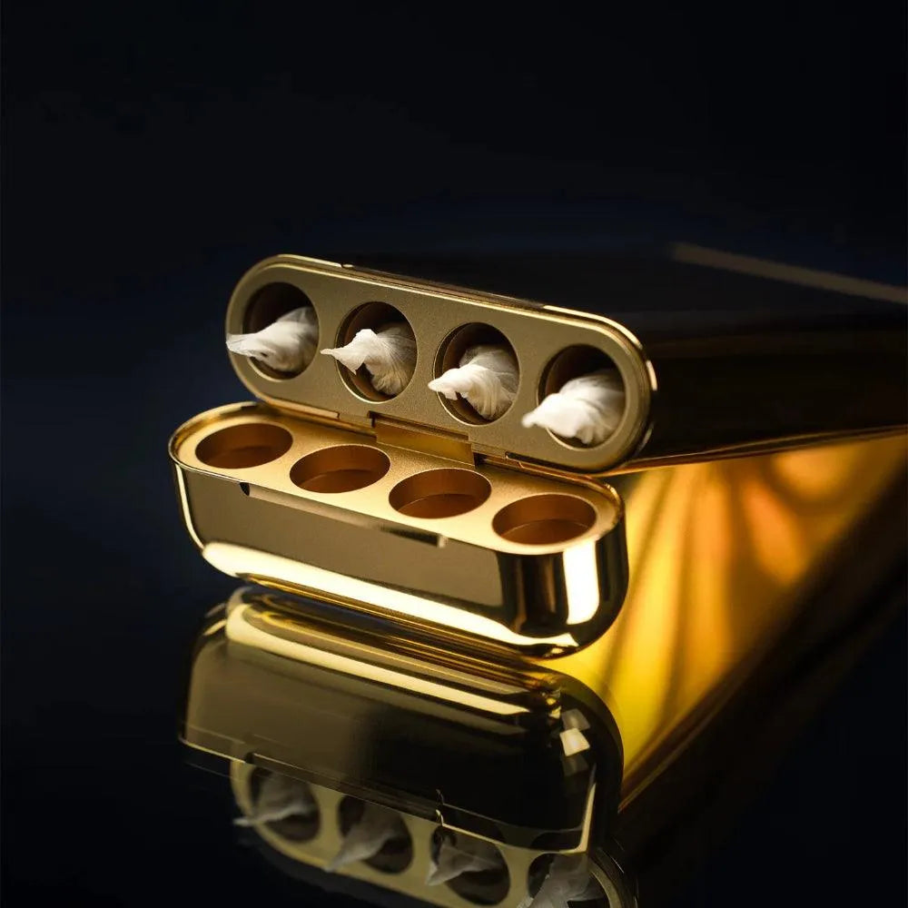 Binnenin biedt een speciale luchtdichte compartiment aan de basis een slimme oplossing voor het bewaren van half gerookte Kegels, waardoor hun kwaliteit voor later gebruik behouden blijft. Gegraveerde indicatoren op het deksel maken het gemakkelijk om de status van elke Kegel te identificeren, wat een doordachte touch van organisatie aan je routine toevoegt.