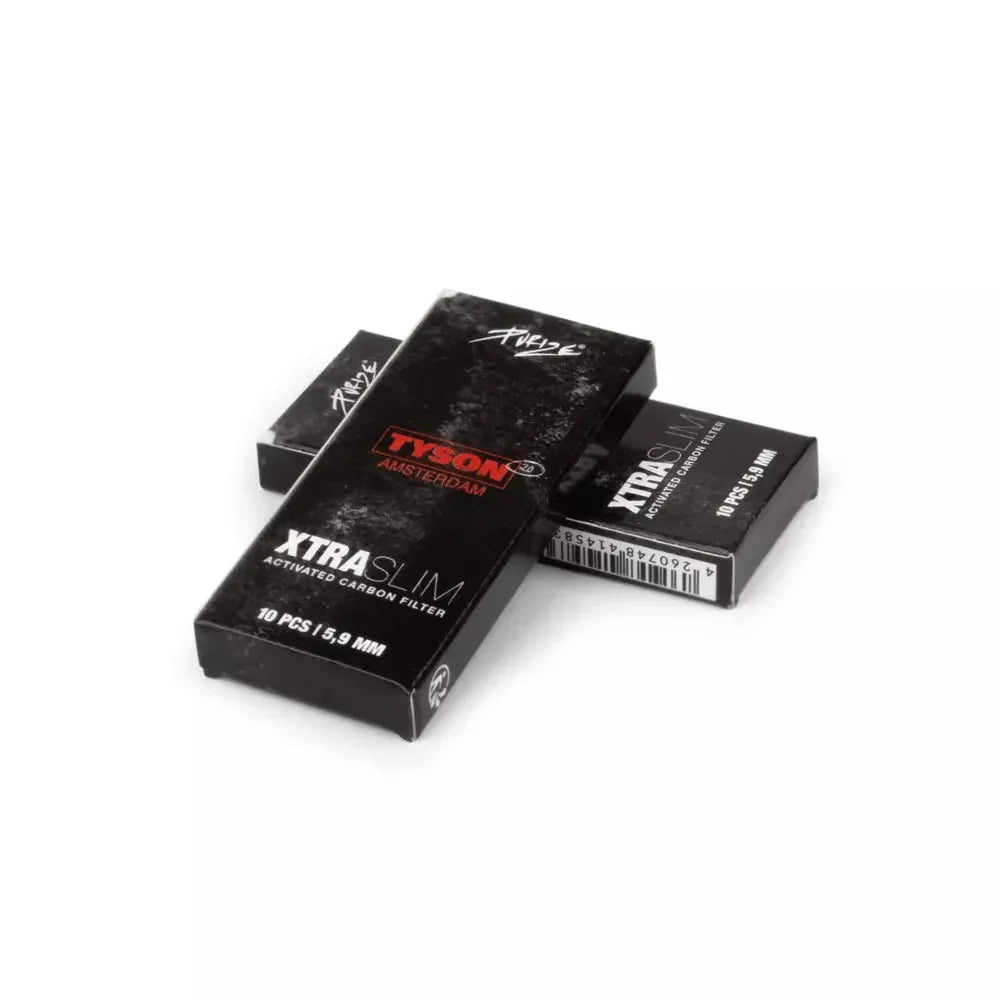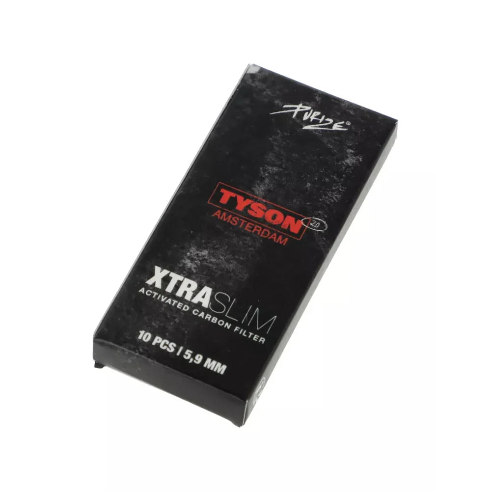 Met een diameter van slechts 5,9 mm zijn Tyson 2.0 x Purize Xtra Slim Carbon Filters ultra-slim en perfect voor compacte handgerolde sigaretten, en bieden ze een soepele luchtstroom zonder concessies te doen aan de filtratie.