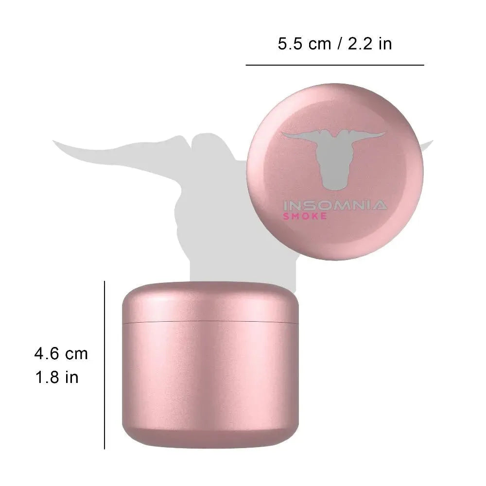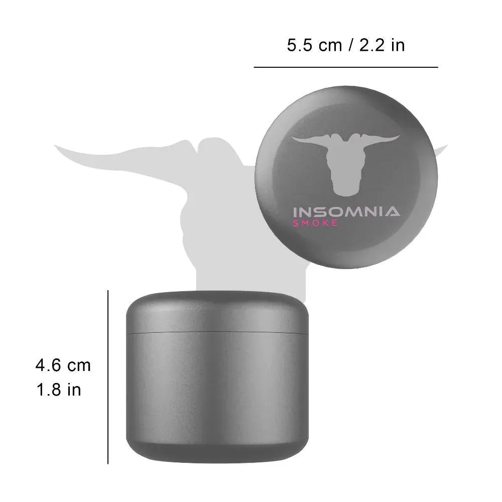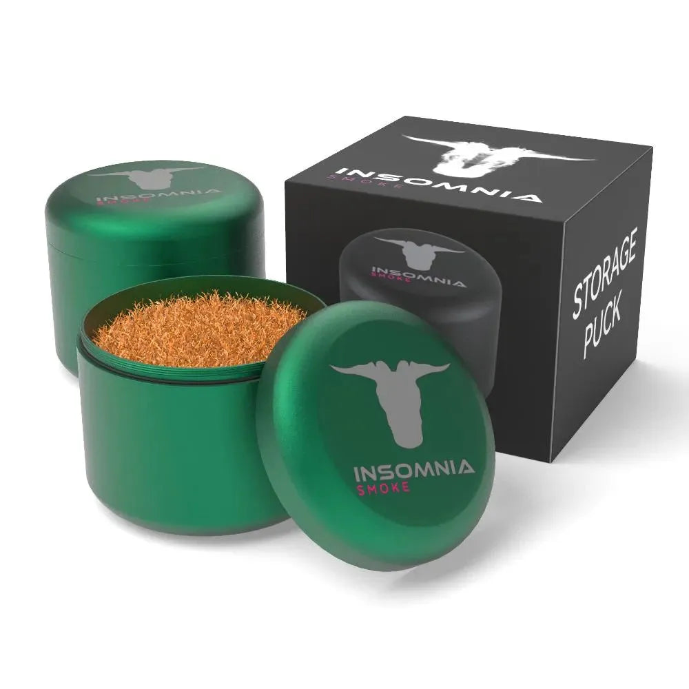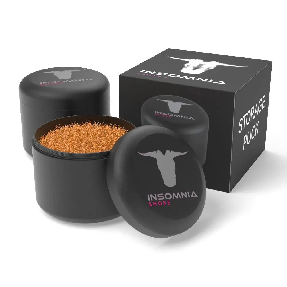 Introduserer Insomnia Smoke Kompakt Oppbevaring Puck - en premium, luktfri og vanntett metallboks designet for diskret og sikker oppbevaring av urter, krydder, piller og andre småting. Laget av høykvalitets anodisert aluminium, sikrer denne slanke og holdbare oppbevaringskrukken at innholdet ditt forblir friskt og beskyttet, enten hjemme eller på farten.