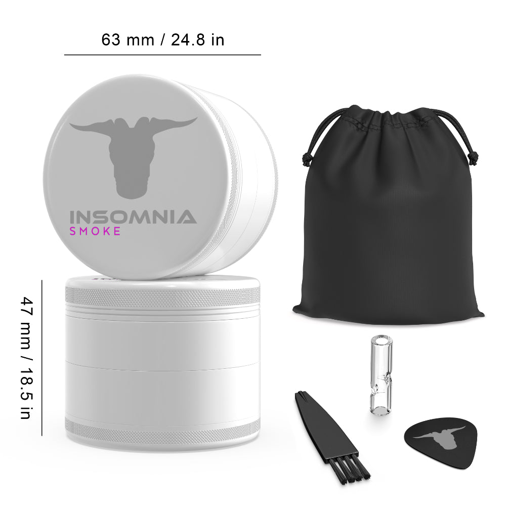 Laget av Insomnia Smoke, denne 4-delte Grinder er designet for å heve din forberedelsesrutine med rene kutt og en førsteklasses finish. Laget av flykvalitetsaluminium og belagt med et non-stick keramisk lag, motstår den klebing, riper og slitasje-slik at din Grinder holder seg skarp og funksjonell lenger.