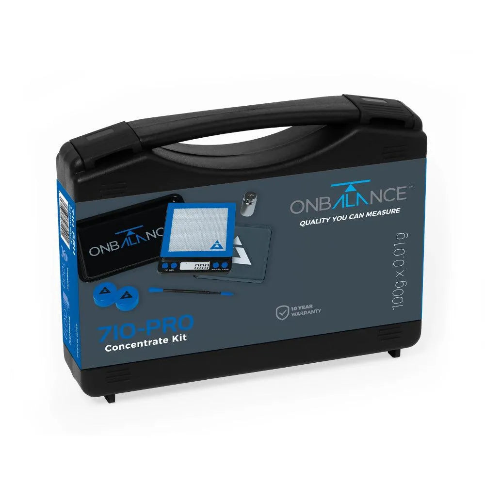 710-Pro Concentrate Kit inkluderer alt du trenger for å veie nøyaktig for alle dine behov. Dette settet inkluderer flere veiebeholdere, et verktøy for å håndtere produktet profesjonelt, en platina-herdet non-stick dab matte og to siliKjegle beholdere, samt et metallbrett. Hold 710-Pro vekten din i toppform med den inkluderte 100g kalibreringsvekten. Vår enkle ett-trykks kalibrering gjør det enkelt å sørge for at vekten din er så nøyaktig som mulig før du tar målingen.