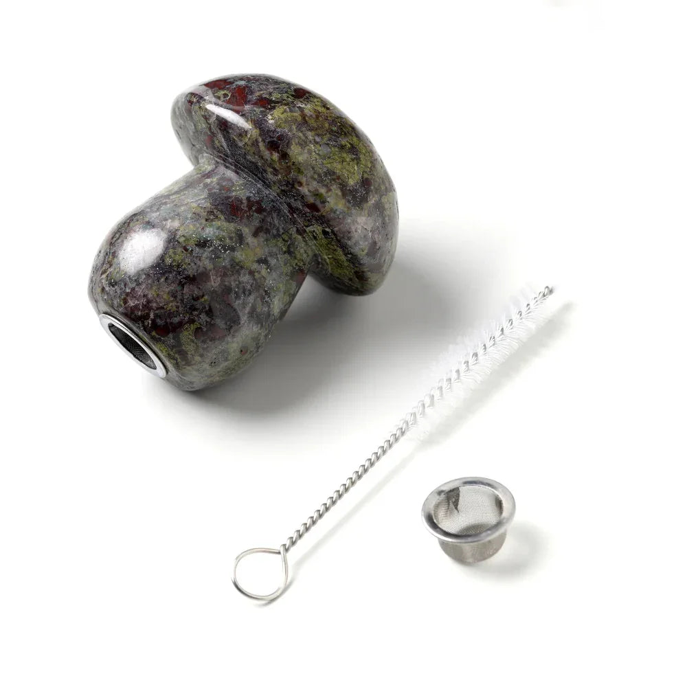 En lunefull vri på den tradisjonelle pipen, Shroom Pipe tilbyr en jordnær eleganse som gjenskaper naturens mest ikoniske symbol. Skulpturert med hensikt, bringer dette stykket et snev av skogmystikk til ditt rituale samtidig som det opprettholder den moderne raffinementen som definerer Astral Projects designetos.
