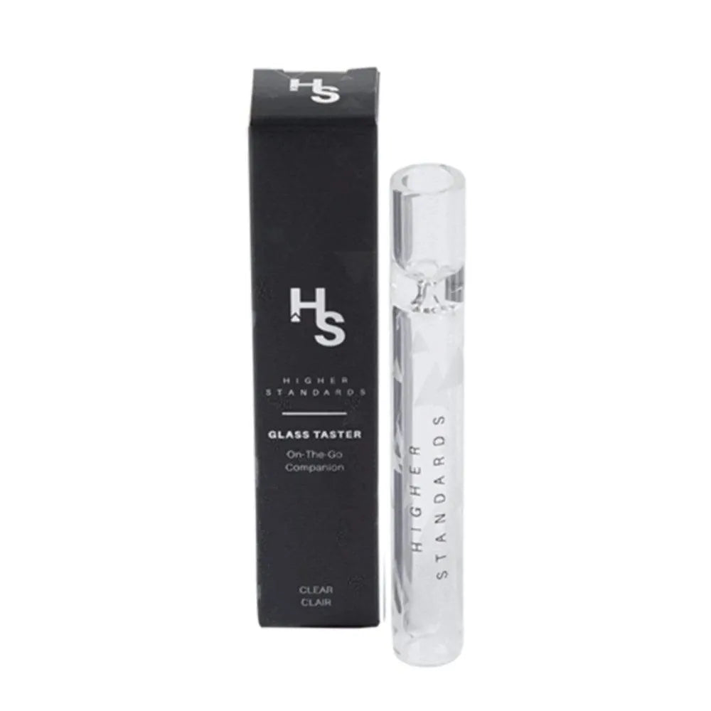 The Higher Standards Glass Taster features a slender and discreet profile that delivers instant hits and convenient smoking experiences. With a length of only 3.5 inches, and constructed from medical-grade borosilicate, the Glass Taster sports remarkable durability and is extremely lightweight. Equipped with a narrow bowl and pinch, this one-hitter pipe is the perfect on-the-go companion. The Glass Taster can be easily cleaned to crystal-clear perfection with the Higher Standards ISO Pure and Salt Rox, along with our other care and maintenance products.