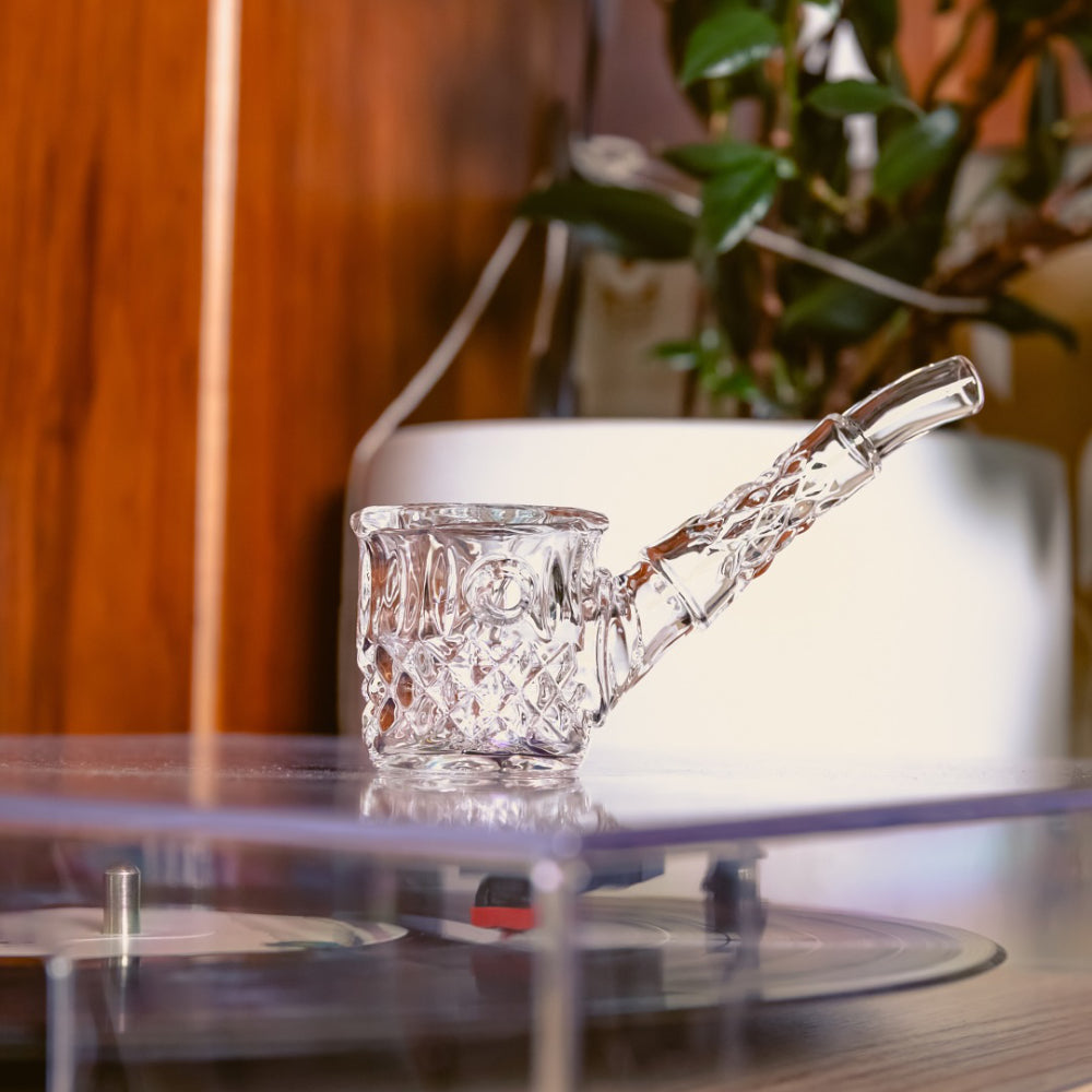 The NWTN Home Highball Hand Pipe is a premium glass hand pipe designed with a vintage-inspired look and a refined everyday feel. It combines decorative cut-glass detailing with practical function for smokers who want a stylish, easy-to-use piece.