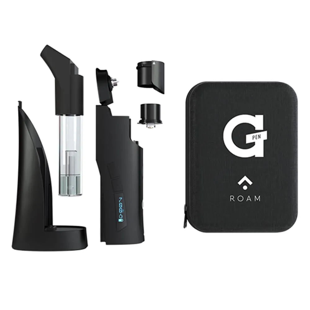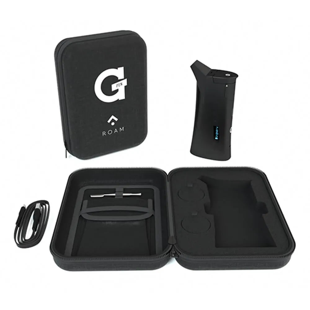 Cada kit completo G Pen Roam vem de série dentro de uma Bolsa de Viagem de Cânhamo, com espaço para dois frascos de concentrados e um bolso para acessórios que incluem um Cabo de Carregamento micro USB e uma Ferramenta G Pen para carregar concentrados.