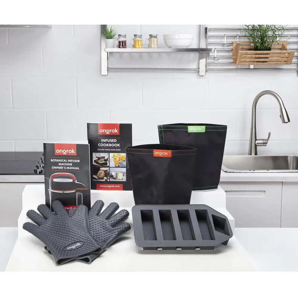 Este infusor útil, certificado pela etl, vem completo com características importantes, incluindo 2 sacos de filtro de nylon (190, 73 microns), um livro de receitas e 2 luvas de goma de siliCone , para que esteja pronto para começar a fazer fantásticas infusões de ervas. Tudo o que precisa de fazer é pressionar alguns botões.