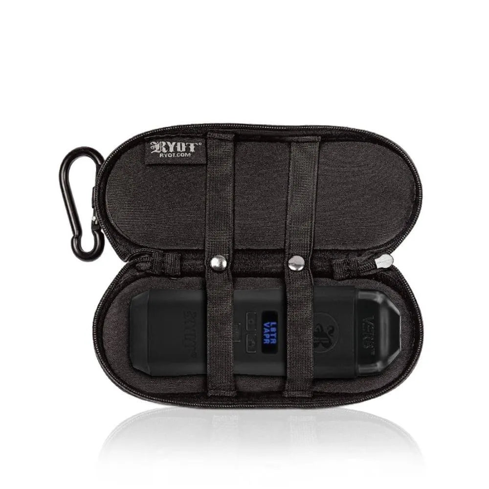 O RYOT HardCase é uma caixa compacta com acolchoamento de estilo memória abundante, fortes tiras elásticas e uma concha rígida. Garante uma passagem segura para o seu Cachimbo de mão, Vaporizadorfavorito ou outros pequenos objetos de valor. O HardCase vem equipado com a tecnologia de absorção de odores SmellSafe e um fecho de correr melhorado. Assim, proporciona convenientemente proteção contra odores e humidade para os seus essenciais de fumo. Inclui também um prático clip de mosquetão para que possa manter os seus objetos de valor sempre à mão. Combina bem com um VERB Vaporizador, Stand Up Spoon Cachimbo de mão, e uma Mochila de Viagem Internacional.