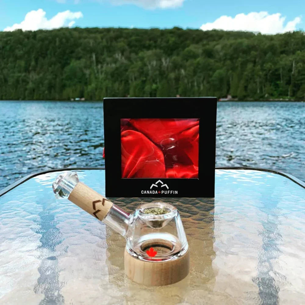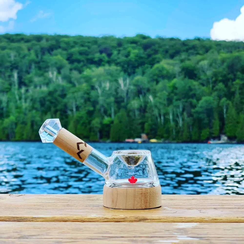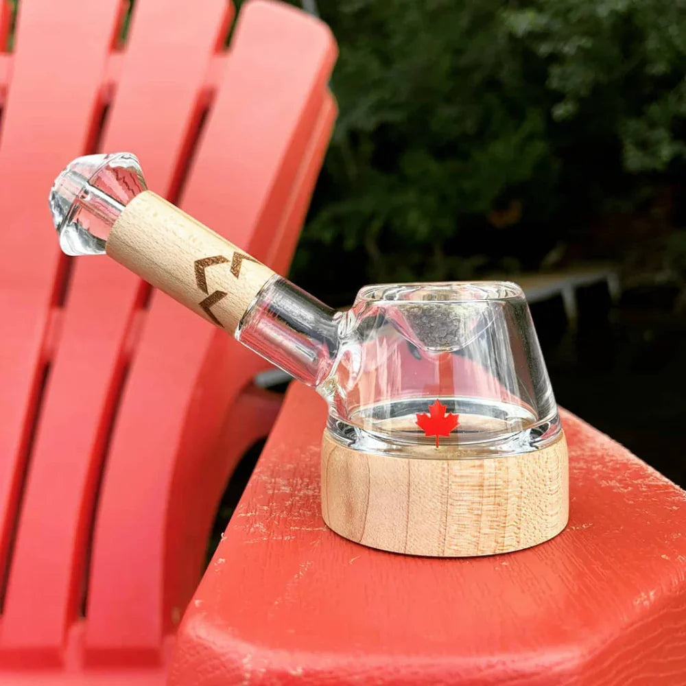 A fusão de vidro borossilicato soprado à mão com detalhes autênticos em madeira de ácer, juntamente com o seu design de herança canadiana, confere-lhe um aspeto e sensação únicos que não se encontram em cachimbos de vidro padrão.