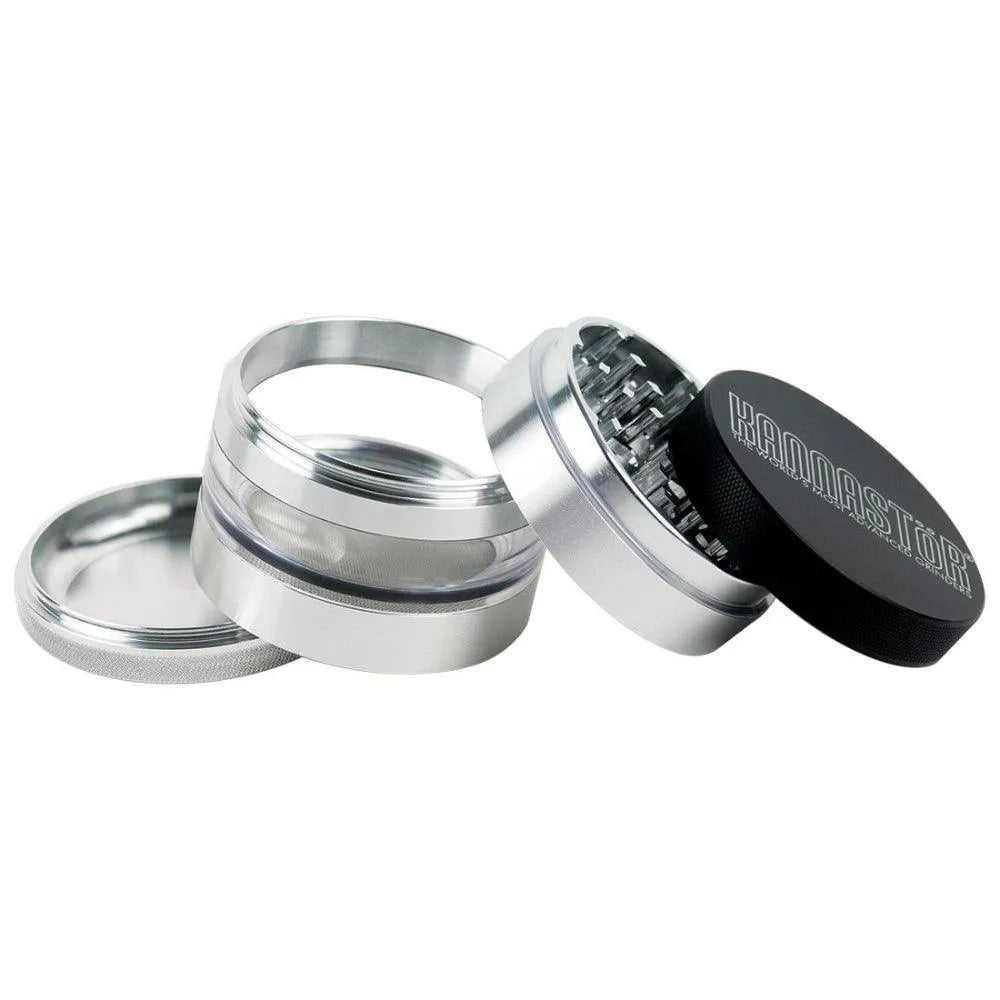 Kannastör Multi Chamber Moedores de ervas pode ser desmontado para uma configuração mais fina e portátil de 3 peças, simplesmente removendo a câmara de peneiração. Outra razão pela qual Kannastör é o Moedor de ervas mais versátil e avançado do mercado.