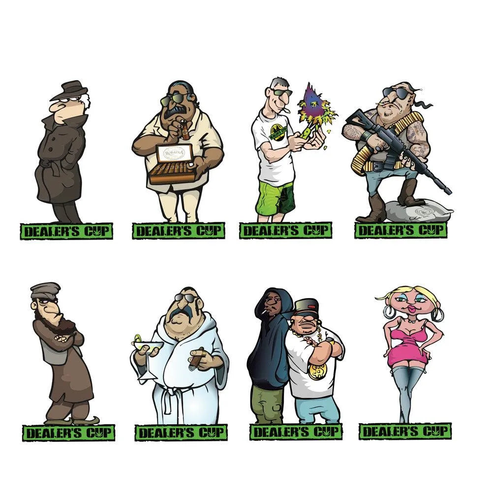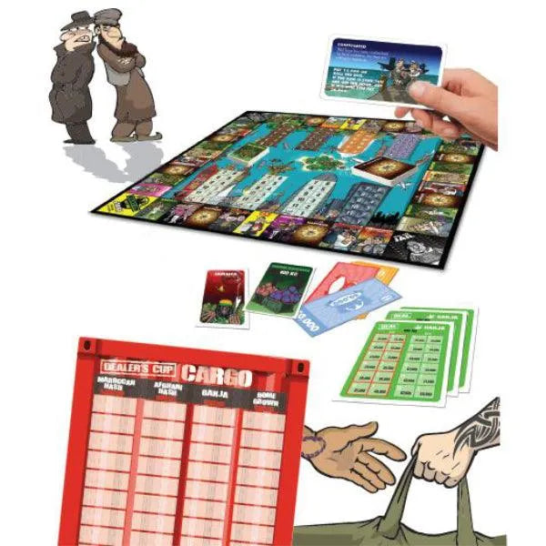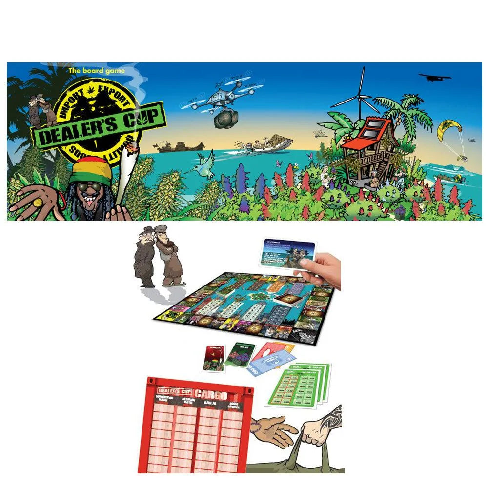 Dealer’s Cup är ett fysiskt brädspel för 2-6 spelare från 18 år och uppåt. Du köper fiktivt gräs eller hasch och säljer det fiktivt igen. Under din resa stöter du på olika hinder som Skatte- eller Invandringsverket. Stjäl lasten från dina medspelare och förhindra att detsamma händer dig. Under tiden, njut av dig själv på Pot Island!